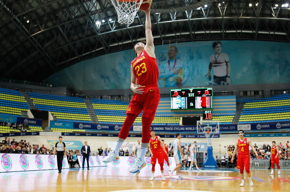 8月25日,中国队球员胡明轩(前)在比赛中进攻。当日,在2023年男篮世界杯预选赛第四窗口期比赛中,中国队以68:56战胜哈萨克斯坦队。新华社发(奥斯帕诺夫摄)