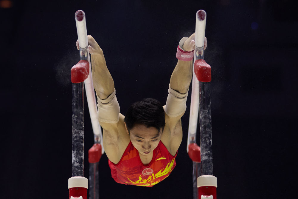 10月31日,中国队选手邹敬园在双杠比赛中。新华社记者 孟鼎博 摄