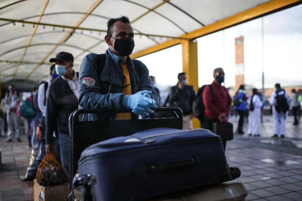2020年9月1日,在哥伦比亚首都波哥大长途汽车总站,旅客们等候乘车。新华社发(约翰·帕斯 摄)