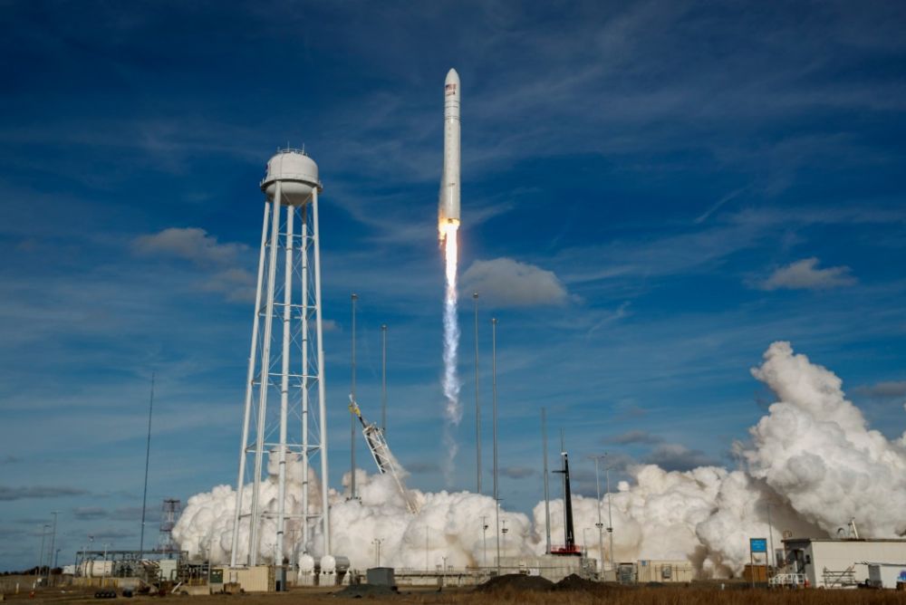 2020年2月15日,“安塔瑞斯”火箭携“天鹅座”飞船从美国弗吉尼亚州瓦勒普斯航天发射场起飞。新华社发(沈霆摄)