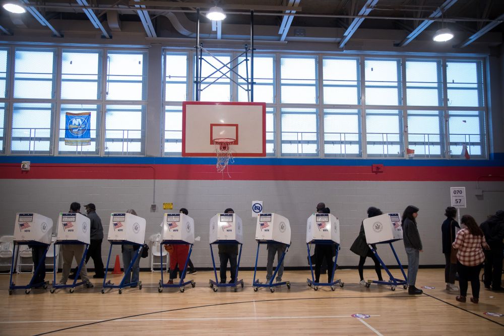 11月8日,选民在美国纽约一处投票站参加中期选举投票。