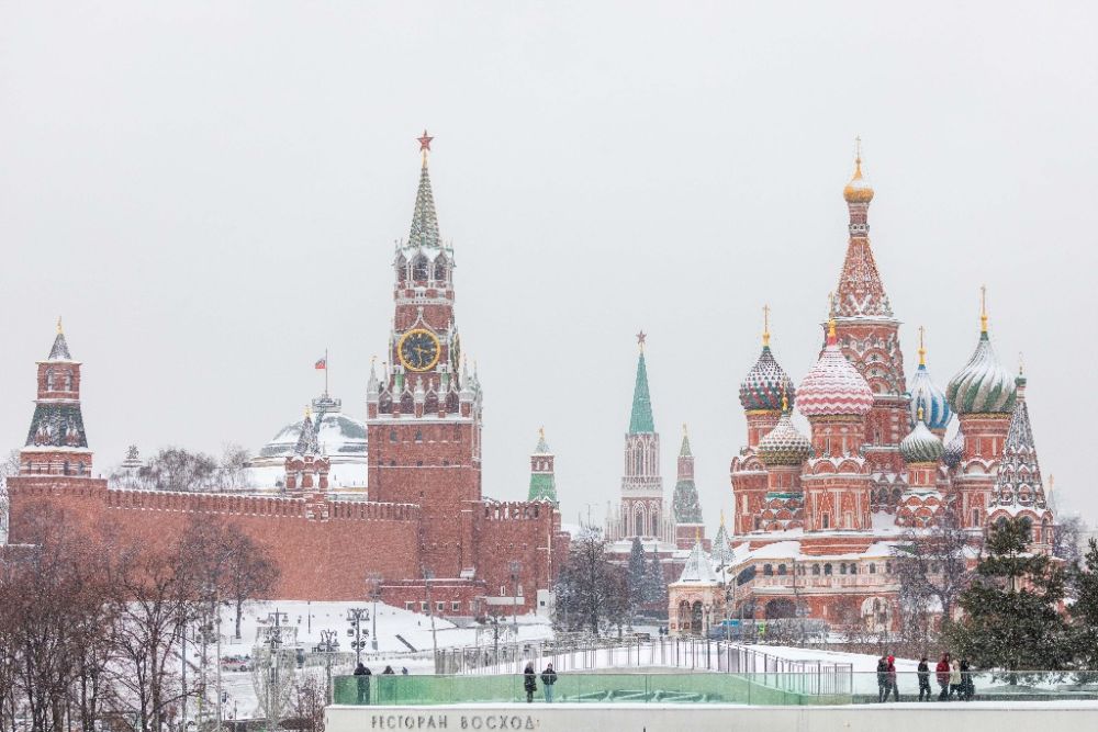 这是2022年1月26日在俄罗斯首都莫斯科拍摄的克里姆林宫和圣瓦西里教堂。新华社记者白雪骐摄
