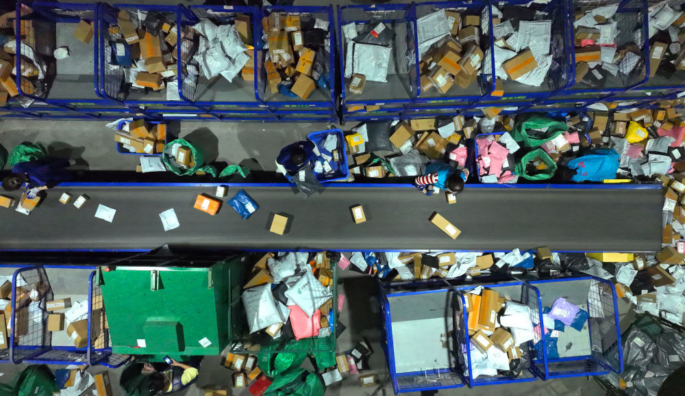 “双11”过后,全国各地的物流企业迎来快递物流高峰。新华社发(曹正平 摄)
