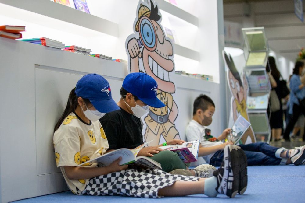 6月1日,儿童在韩国首尔国际书展上阅读书籍。新华社记者王益亮摄