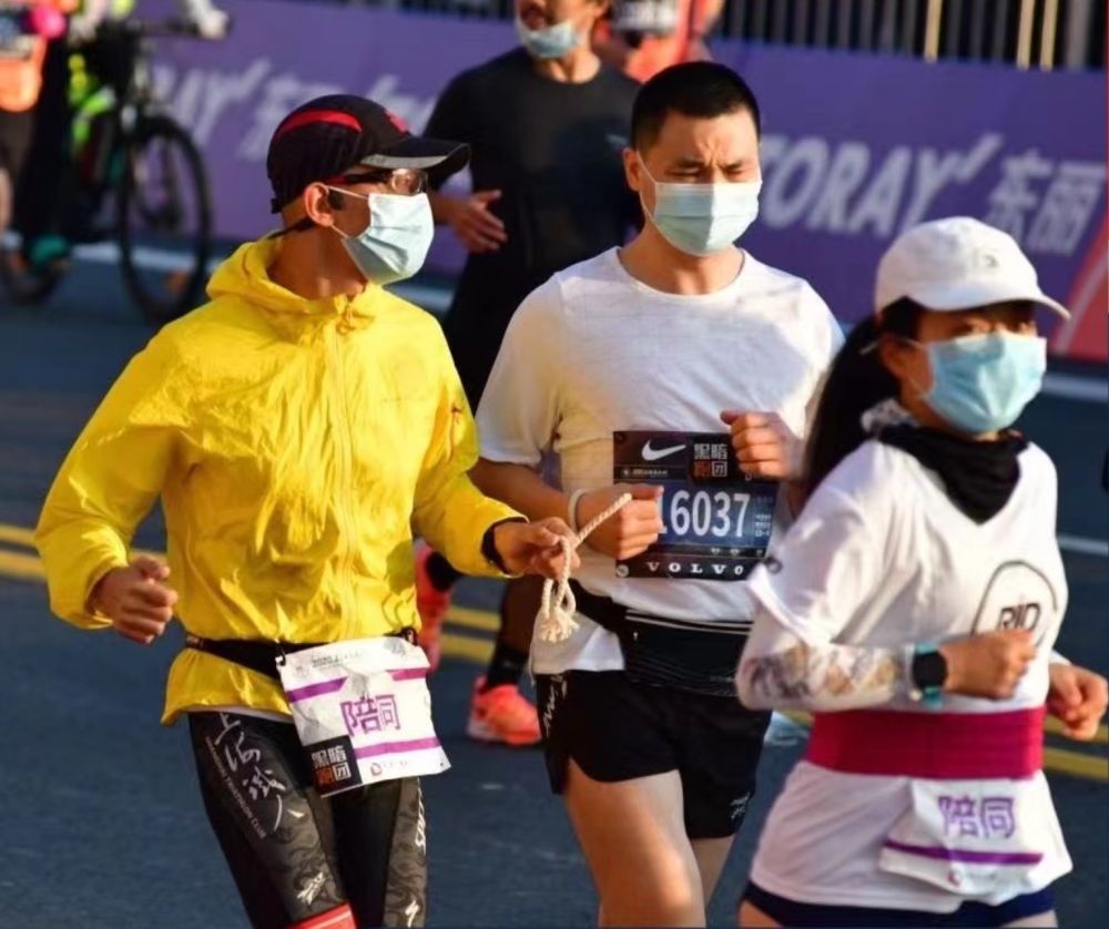 在“上马”赛道上,这是一幅暖心的画面:系在手腕上的细绳,一头连着视障跑者,一头连着守护他们的陪跑员。他们的速度很慢,步伐却很踏实。