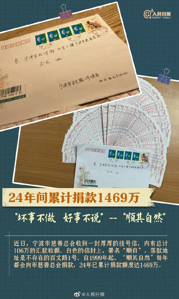 近日,署名“顺其自然”的捐款再次如约而至,24年已累计达到1469万。