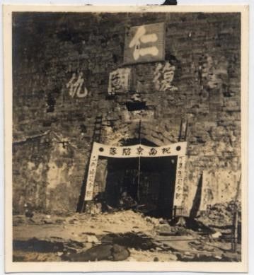相册中日军在南京中华门悬挂“祝南京陷落”等标语的照片。 受访单位供图