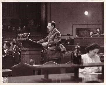 亨利·诺兰在法庭上质证甲级战犯松井石根。 受访单位供图
