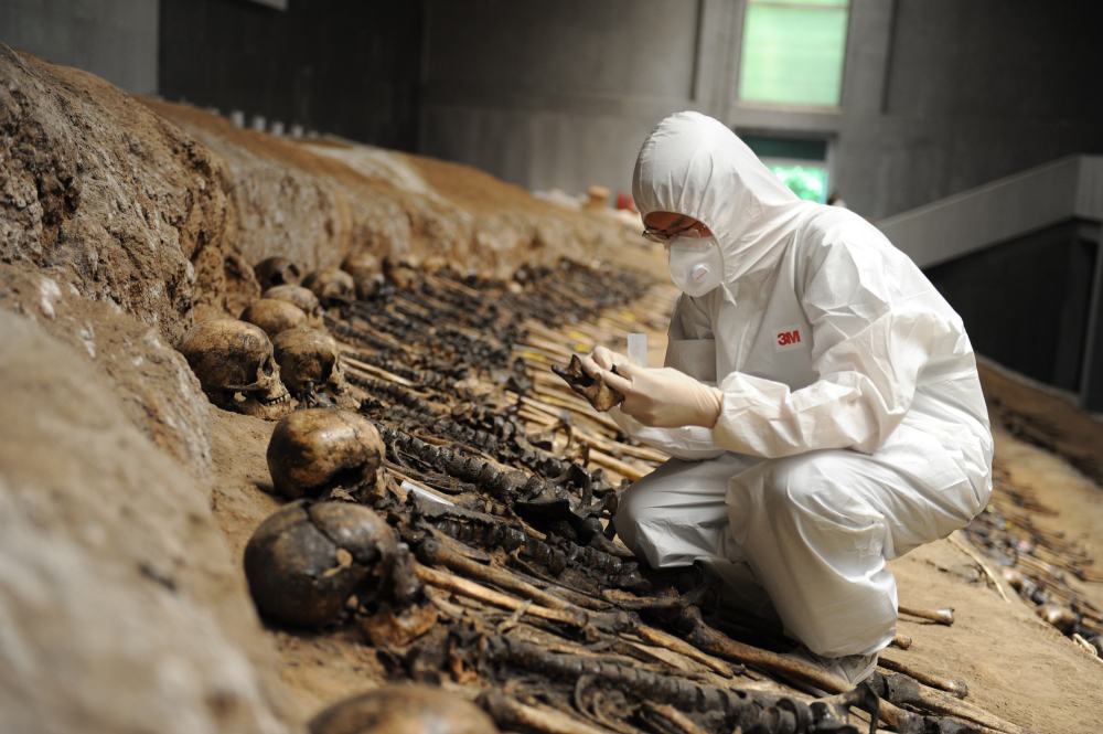 张全超教授团队在保护“万人坑”内遗骸的同时,通过重要个体DNA样本的采集提取等方式,对遇难遗骸进行创伤、病理、死因分析和综合研究,建立完整的国际化信息数据库。用科学严谨的数据化,将此类历史罪证长久保存下去。