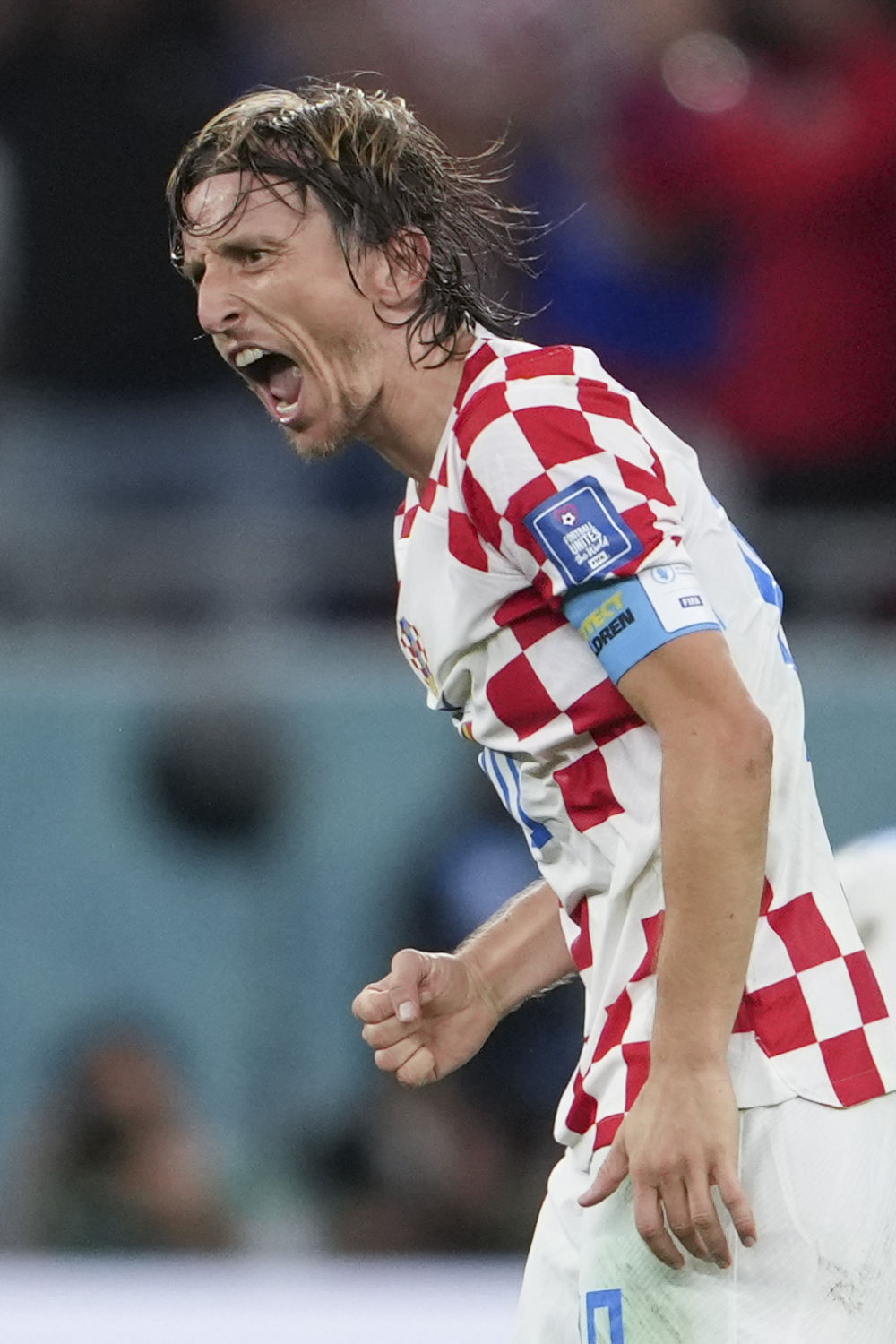 莫德里奇在他最后一届世界杯上拼尽全力。虽与大力神杯失之交臂,还有一场季军赛。