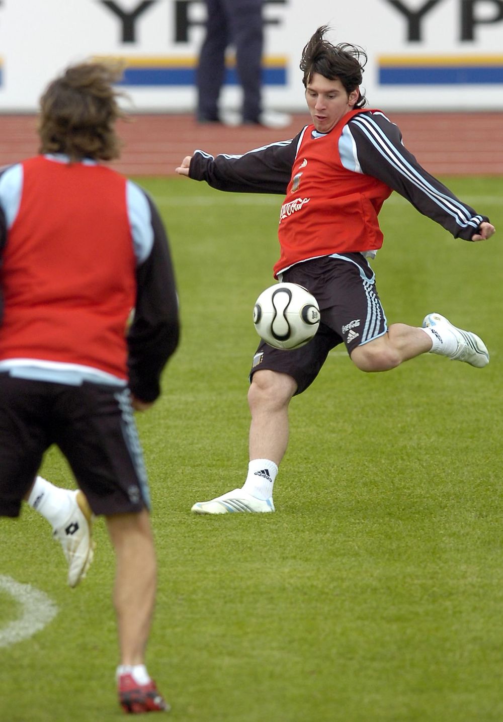 2006年6月3日,阿根廷国家队球员梅西(右)在训练中。新华社记者 戚恒 摄