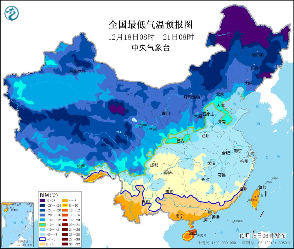 中央气象台12月18日6时继续发布低温蓝色预警:
