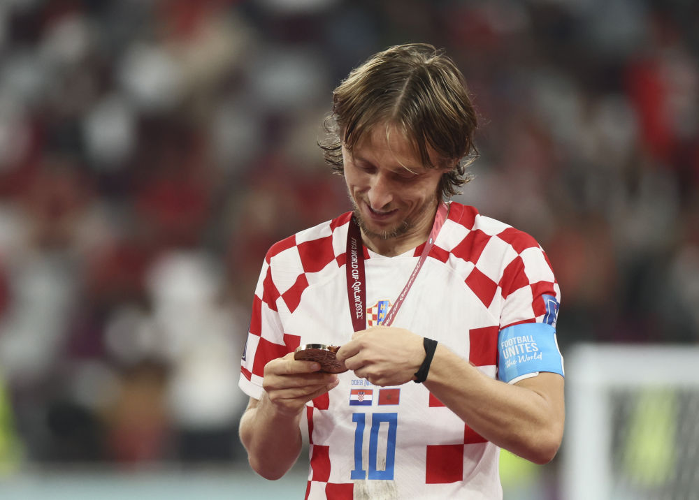 开场哨响,莫德里奇摸了摸胸前的国旗,往上拽了拽队长袖标。当天在哈里发国际体育场,是他第162次代表国家队出征,也是他世界杯的最后一舞。
