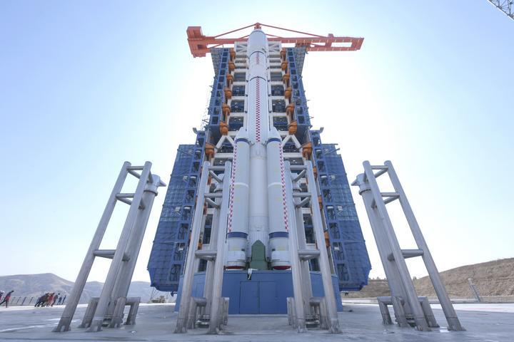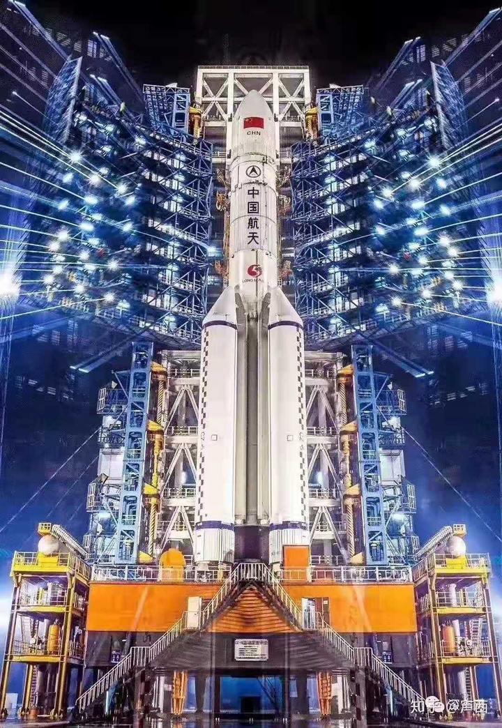 2019年12月27日,我国新一代大型运载火箭长征五号遥三火箭在海南文昌发射基地成功发射,中国航天科技集团第四研究院提供正推火箭和消氢点火装置为火箭发射全程护航。这是长征五号遥三火箭整装待发。