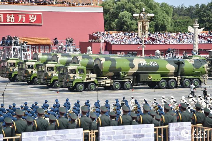 1999年8月2日,中国新型固体燃料陆基远程洲际战略导弹首发试验圆满成功。10月1日的“世纪大阅兵”中,新型远程洲际导弹方阵压轴出场,自豪地接受全国人民的检阅。