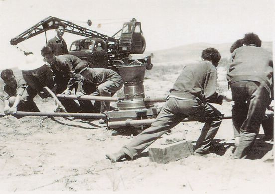 1962年6月,四院人人拉肩扛直径300毫米固体火箭发动机准备试车。