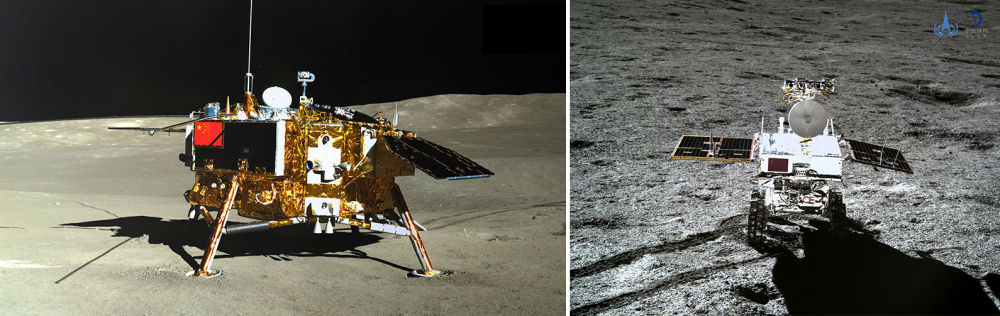 2019年1月11日,嫦娥四号着陆器与玉兔二号完成两器互拍。
