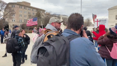 两场集会对国会山骚乱的性质各执一词,有人高唱“失败的暴徒”,还有人面对面激烈争吵。