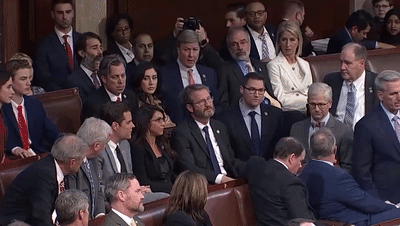 当然,党内派系内斗暂停,两党之间继续势如水火。在最后一轮表决中,麦卡锡获216票支持,全部来自共和党人,而212名民主党众议员把票都投给了新任民主党领袖哈基姆·杰弗里斯。连日来,民主党众议员乐得“坐山观虎斗”,在现场有说有笑,甚至有人在社交媒体上发出自己拿着爆米花准备“看戏”的照片。