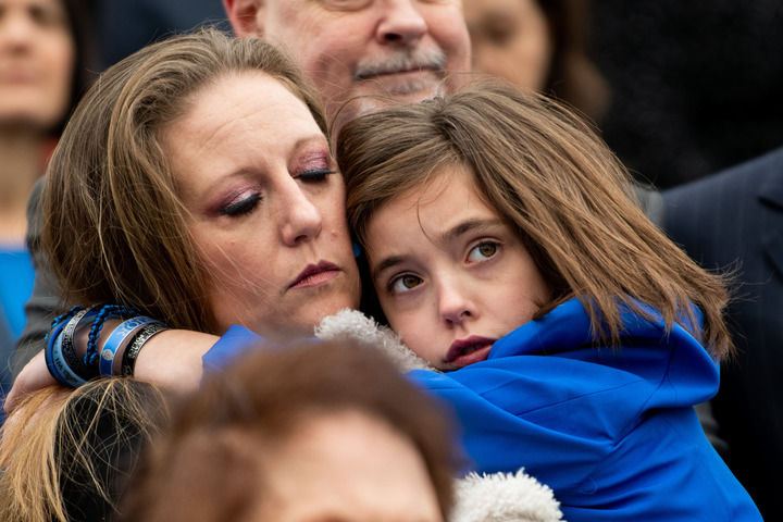 2023年1月6日,在美国首都华盛顿的国会大厦外,一对母女参加“国会山骚乱”两周年纪念仪式。新华社记者刘杰摄