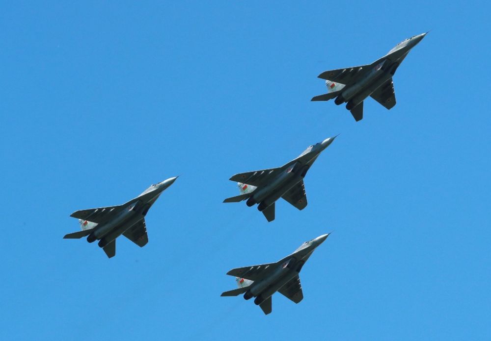 2019年6月24日,白俄罗斯空军战机编队从明斯克郊区上空飞过。新华社发(马祖列维奇摄)
