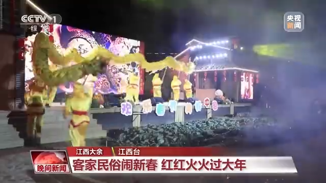 在江西大余的丫山国家旅游度假区,当地推出形式多样的客家民俗活动。喜庆热闹的舞龙表演,点燃了游客的热情;在篝火旁,游客和当地的村民手牵手,边唱边跳,共贺新春。
