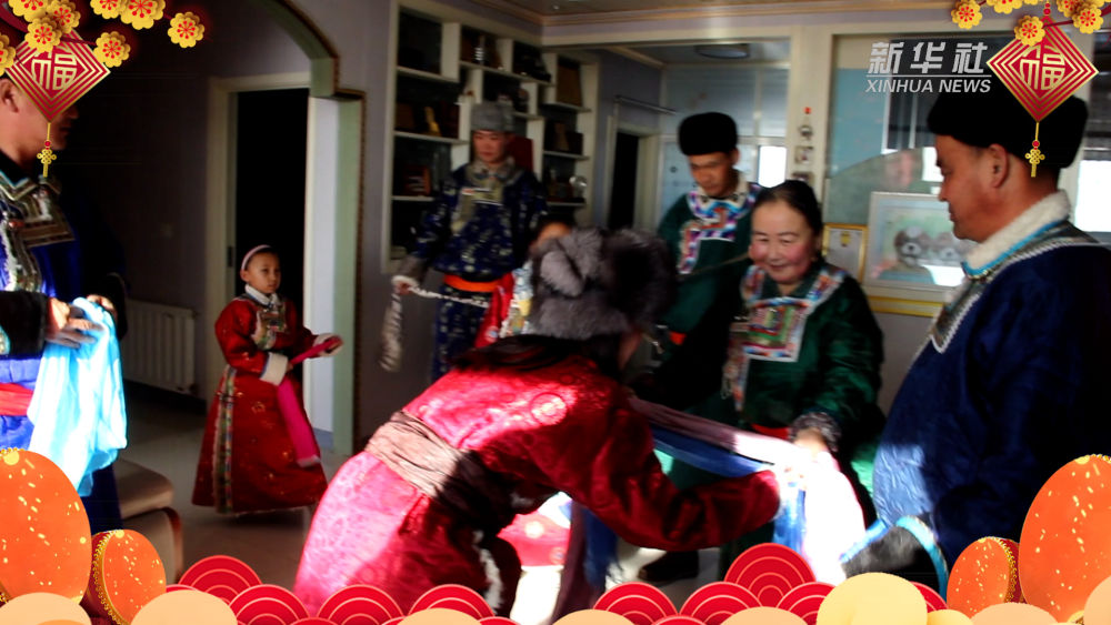 内蒙古锡林郭勒盟东乌珠穆沁旗珠恩嘎达布其镇,穿着蒙古袍,互相敬献哈达,是这里牧民的拜年礼俗。广袤的草原、热情的牧民、特色的民俗文化,吸引了不少游客前来游玩,成为中国北疆亮丽的风景线。