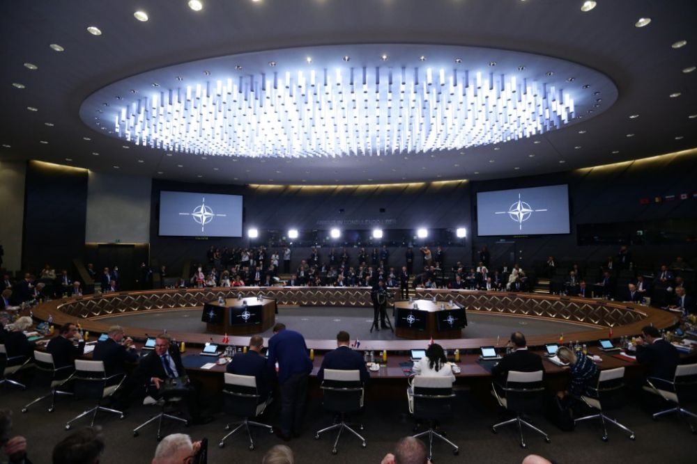 2022年6月16日,与会人员在比利时布鲁塞尔的北约总部出席北约成员国国防部长会议。(新华社记者 郑焕松 摄)
