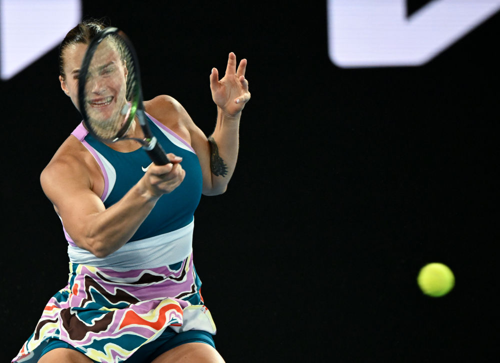1月26日,萨巴伦卡在比赛中回球。新华社记者郭磊摄
