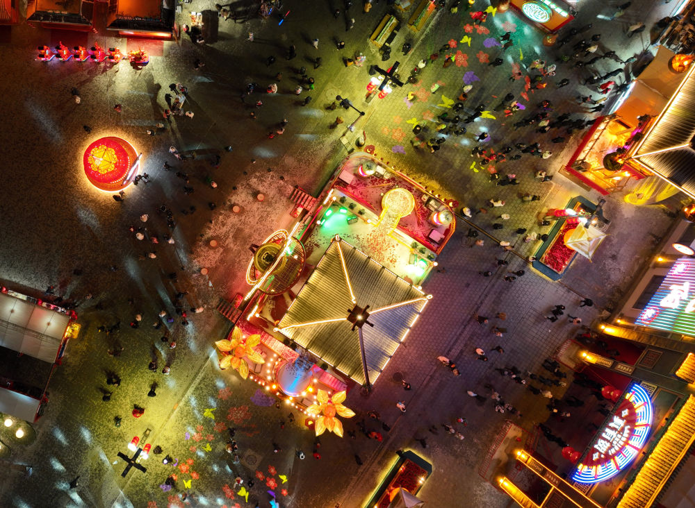 1月23日,市民在沈阳新春皇寺庙会游玩(无人机照片)。(新华社记者杨青摄)
