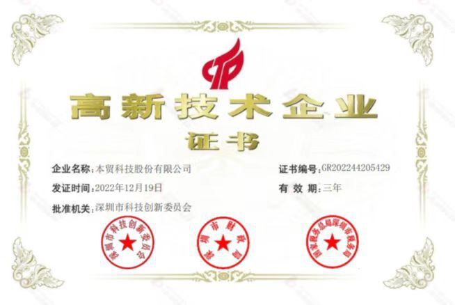 这是继2013年首次获得国家高新技术企业认证后,本贸科技连续第十年获评国家高新技术企业。