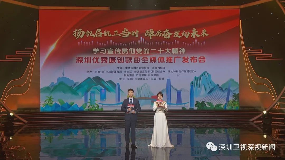 2月10日,由中共深圳市委宣传部主办的“扬帆启航正当时 踔厉奋发向未来——学习宣传贯彻党的二十大精神深圳优秀原创歌曲全媒体推广发布仪式”在深圳广电集团举行。