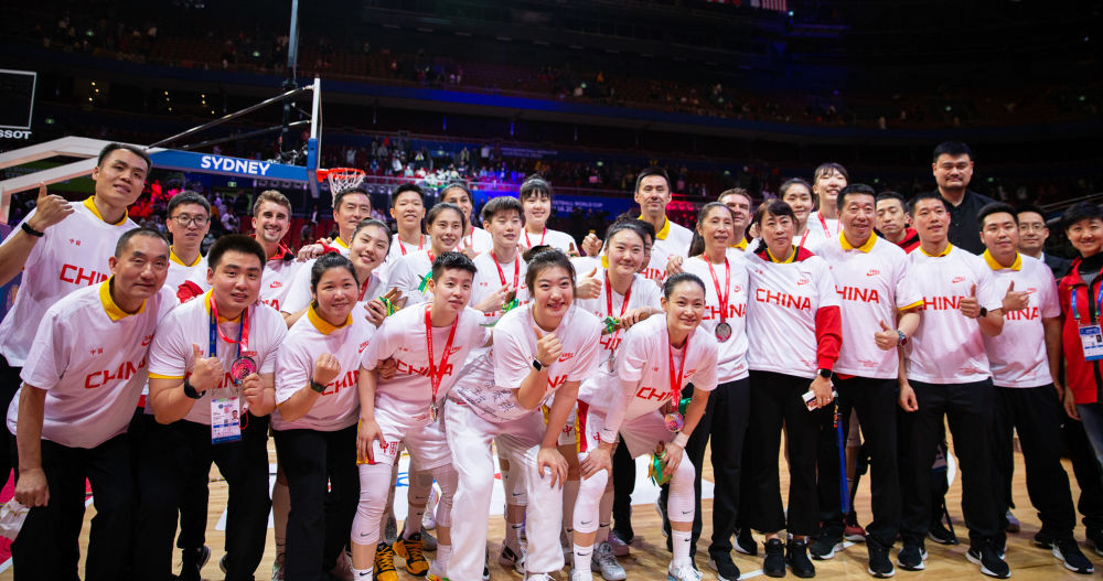 2022年10月1日,中国队在2022年女篮世界杯颁奖仪式后。新华社发(胡泾辰 摄)