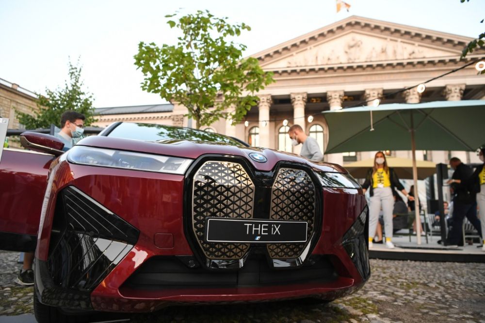 这是2021年9月8日在德国慕尼黑国际车展宝马汽车户外展区拍摄的一台宝马iX电动车。新华社记者逯阳摄