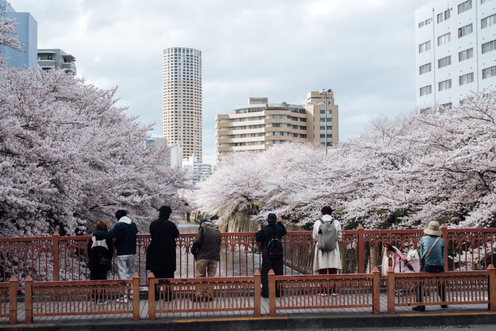 2022年3月30日,人们在日本东京目黑川沿岸赏樱。(新华社记者张笑宇摄)