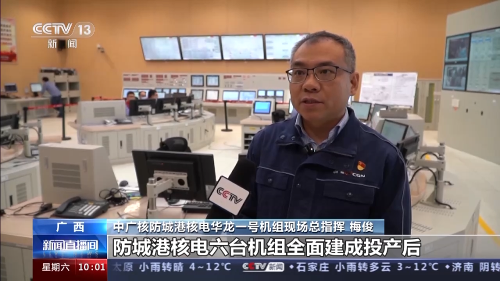 中广核防城港核电华龙一号机组现场总指挥 梅俊:防城港核电六台机组全面建成投产后,预计年发电量526亿度,深度契合广西沿海清洁电源基地规划,对促进广西能源绿色转型、保障能源安全供应、提升能源系统效率具有重要意义。