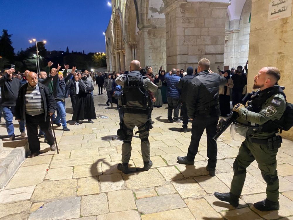 4月5日,以色列警察在耶路撒冷老城阿克萨清真寺执勤。新华社发(穆阿迈尔·阿瓦德 摄)