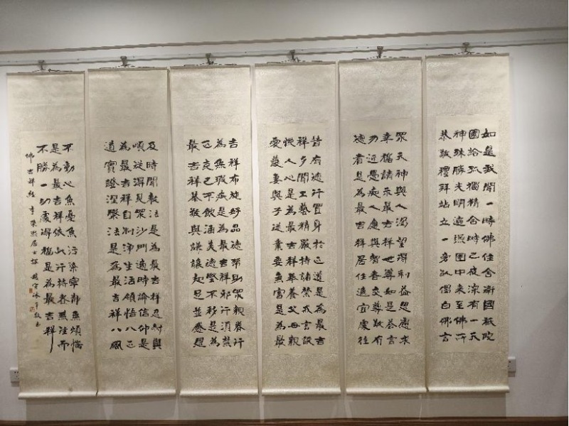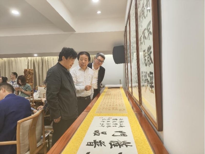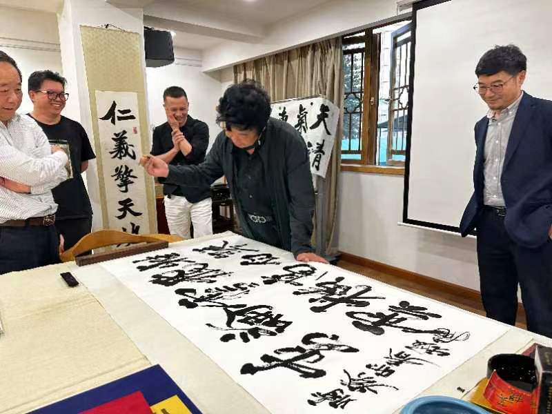 讲座结束后,赵寅与宝安区国画研究会会长、南风国画院院长、书画名家史文集,宝安书法家协会主席万迪龙现场挥毫泼墨,进行了创作展示。三位艺术家纯熟技法、高超水平让在场书画爱好者赞不绝口。赵寅表示,深圳作为粤港澳大湾区核心和改革开放的前沿阵地,在文化上呈现出多元与开放的特质,吸引着来自全国各地的艺术家。在书法领域,深圳也不乏许多充满着活力、创作激情与大胆探索的书法家。深圳主办的许多书法活动策划创意好、质量高,也具有相当的美誉度,着着实实地推动着深圳书法的繁荣发展。