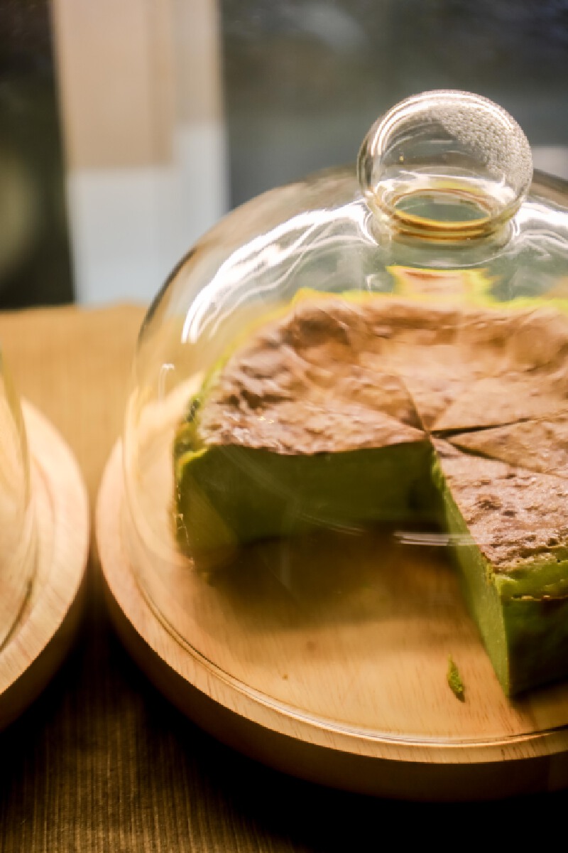 原味巴斯克烤芝士蛋糕,是来店必点的招牌。外层烤成微焦的黄褐色,一叉下去,咸香的芝士流心噗嗤冒出,入口轻巧流淌;从内里吃到蛋糕外层,扎实绵密的糕体在舌尖缓缓化开,释放适中的甜度,再沾上一点附赠的海盐丰富口感,真的不要太满足~难怪会有外地的食客,特地驱车前来堂食。