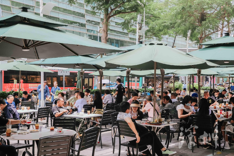 老板坦言,地王大厦里聚集了很多在银行、律所工作的白领,他就是想为白领一族提供一个可以阅读、交流、商务谈判、学习分享的美好空间。因此,律簇空间功能多样,集咖啡茶点、图书销售、场地租赁、活动沙龙于一体。在这里,每个月都会举行2到4场金融、法律等主题的讲座活动,很受年轻人的追捧。在全面恢复通关后,前来这里的香港顾客也越来越多了。
