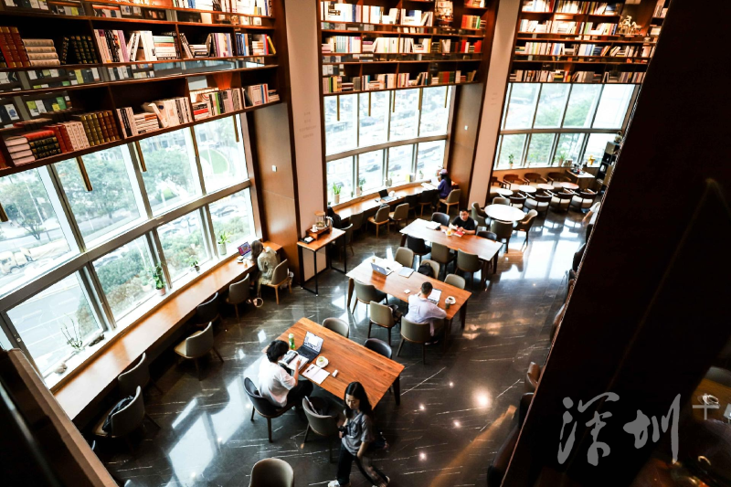 藏在深圳著名地标——地王大厦里的咖啡店律簇空间于2016年开业,是深圳第一个以法律、金融为主题的社交咖啡店。律簇名字的由来就是:律师聚集的地方。这里空间极为高朗,大面幅环形玻璃窗与凌空书架搭配,营造出如古典图书馆般高雅轩敞、宁静沉浸的特别氛围。在这里,能体验到文学巨匠博尔赫斯所说的:“如果世上有天堂,那一定是图书馆的模样。”