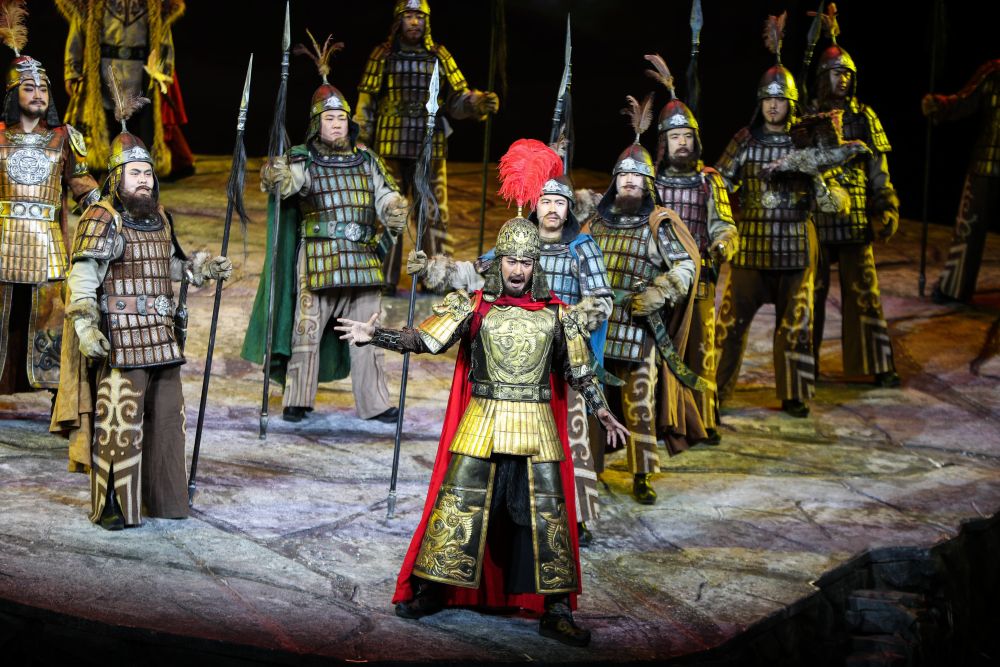 2018年6月7日,中央歌剧院原创民族歌剧《玛纳斯》在北京天桥艺术中心上演。 新华社记者 郑焕松 摄