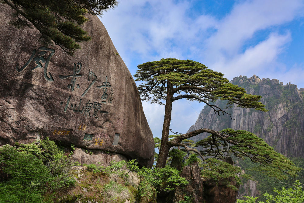 ↑5月18日,游客在安徽黄山风景区玉屏景区游览。新华社发(樊成柱 摄)