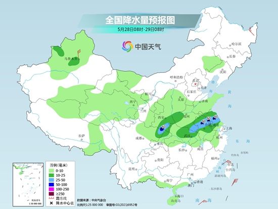 随着副热带高压加强西伸北抬,同时西南暖湿气流增强,中东部大范围强降雨过程25日开启。昨天,此轮降雨进入最强时段,四川东北部、湖北东北部、河南东南部、安徽中南部、江苏南部、上海西北部、浙江南部及台湾东部等地部分地区出现暴雨或大暴雨,湖北武汉、黄冈和安徽铜陵等局地特大暴雨;山西中南部、河北南部及吉林中西部等地中到大雨。