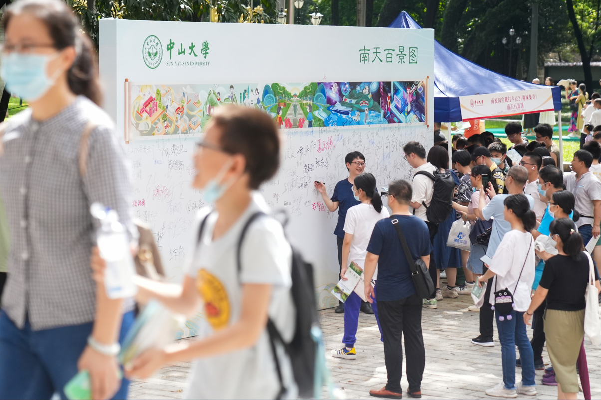 南校园设置宝藏打卡点,通过趣味形式,从多方位,多角度展现校园魅力。马克龙总统来访时走过的逸仙路、庄严巍峨的中大校训墙、人文气息浓厚的中山大学博物馆,都吸引了众多考生家长前来参观。考生家长漫步美丽校园,在“南天百景图”签名墙上留下自己的印记,在红砖绿瓦间谛听历史脉搏,于一草一木中感受中大气质。