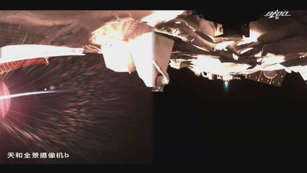天和核心舱舱外全景摄像机拍摄的空间站电推进系统点火状态图片。(航天科技集团六院供图)
