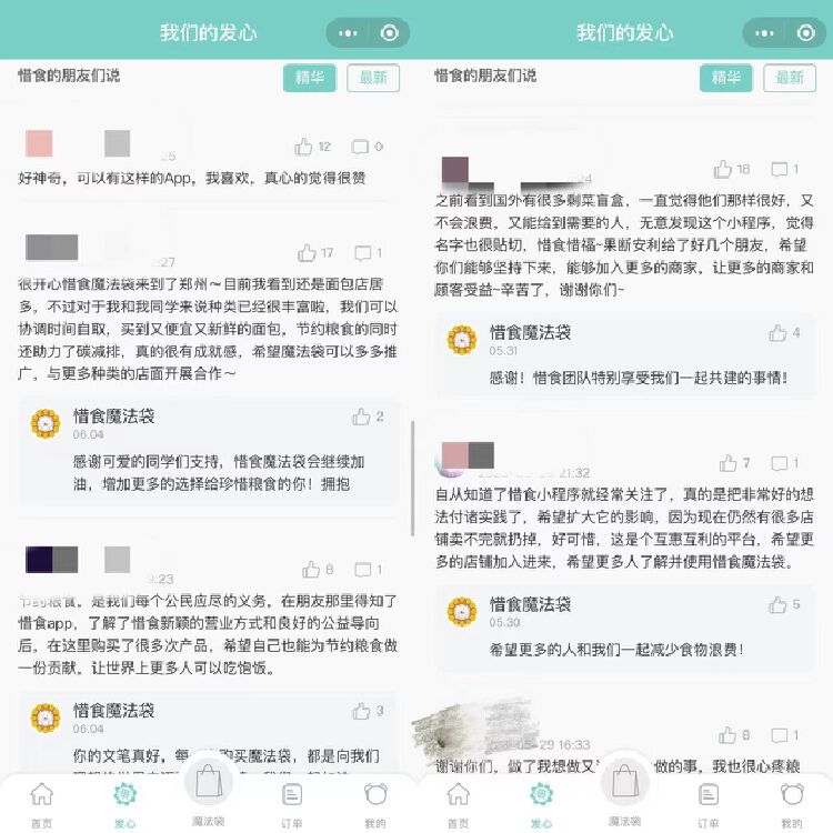 “看完创建惜食的初心,我感觉很温暖,我们不能忘记那些有饥荒的年代,要珍惜粮食,懂得感恩,很开心遇到惜食这样暖心的idea。”
