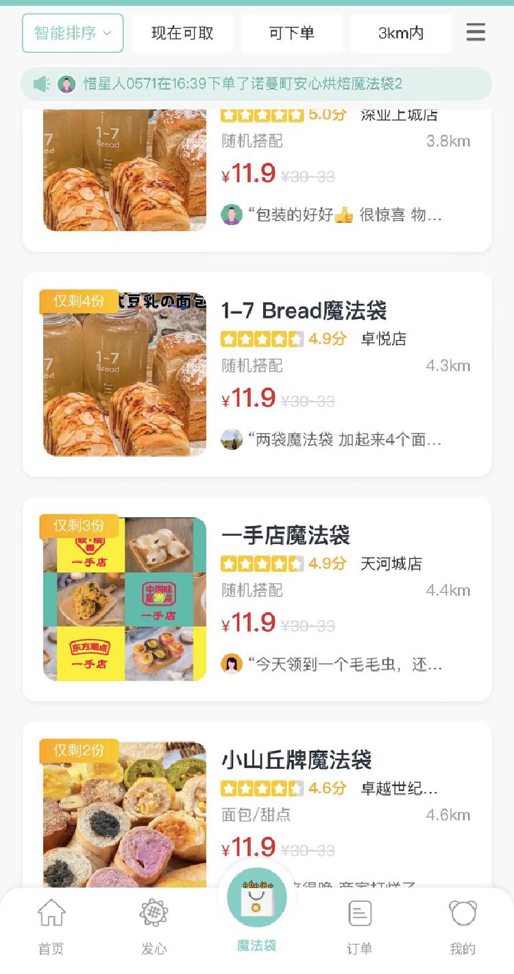 “我们会根据每天的售卖情况调整上线‘惜食魔法袋’的数量,一般来说会在10-20份之间。上线近两个月来,我们每天的损耗率有所降低,同时我也有看到很多新面孔来到店里消费。一方面我们可以通过这种方式减少每天的损耗,另一方面吸引来一些新的顾客群体,对我们来说‘何乐而不为’。”刘锦华告诉记者,“有时候会看到领取魔法袋的消费者开盲盒的表情很惊喜,作为商家我们也很开心,这是消费者对我们产品的认可。”