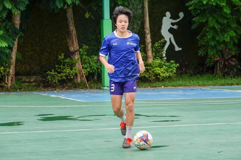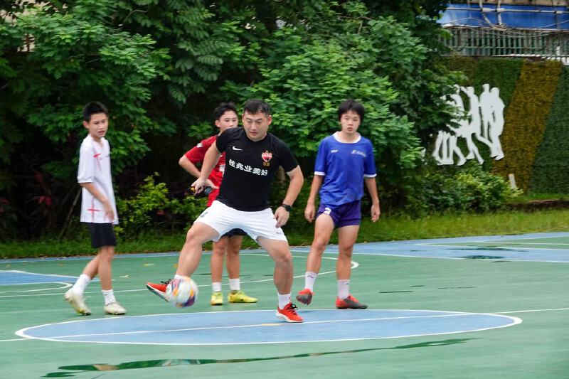 ▲7月19日,盐田区田东中学操场,市民正在踢球