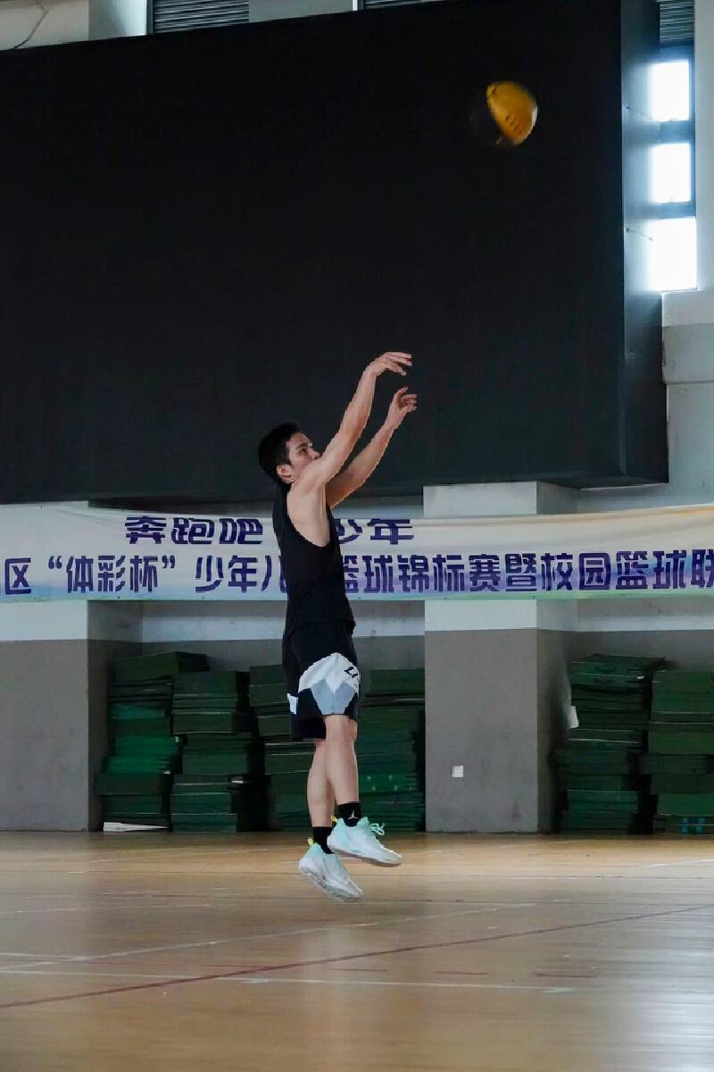 ▲市民正在学校体育场馆练习投篮